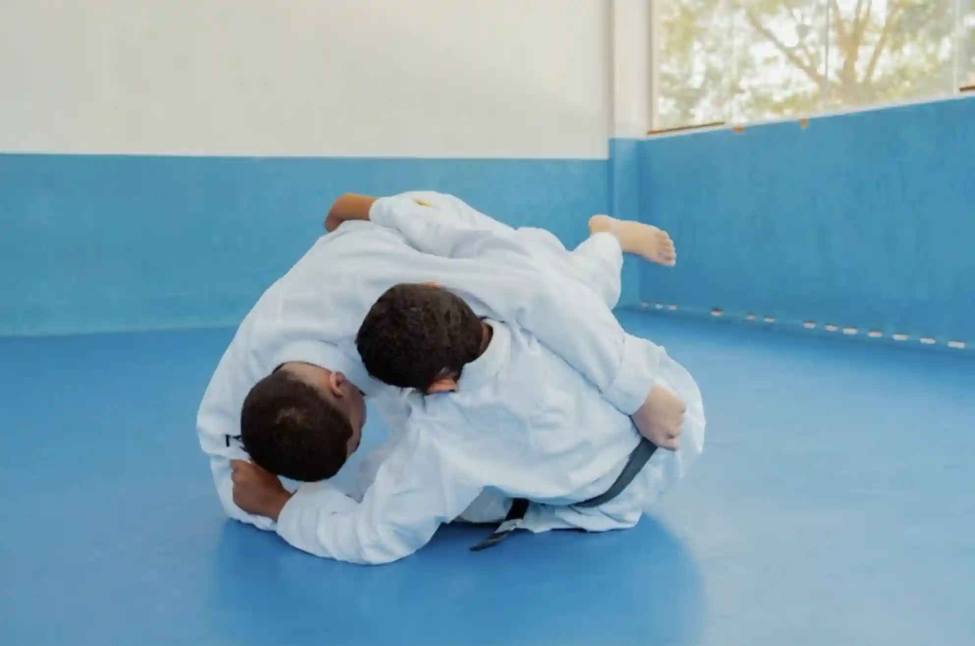 После этого идет борьба в стойке. Дети учатся выходить из захвата, удерживать равновесие и работать корпусом. Далее – элементы борьбы на полу. Они включают контроль, разворот и освобождение. Все выполняется мягко, без давления.